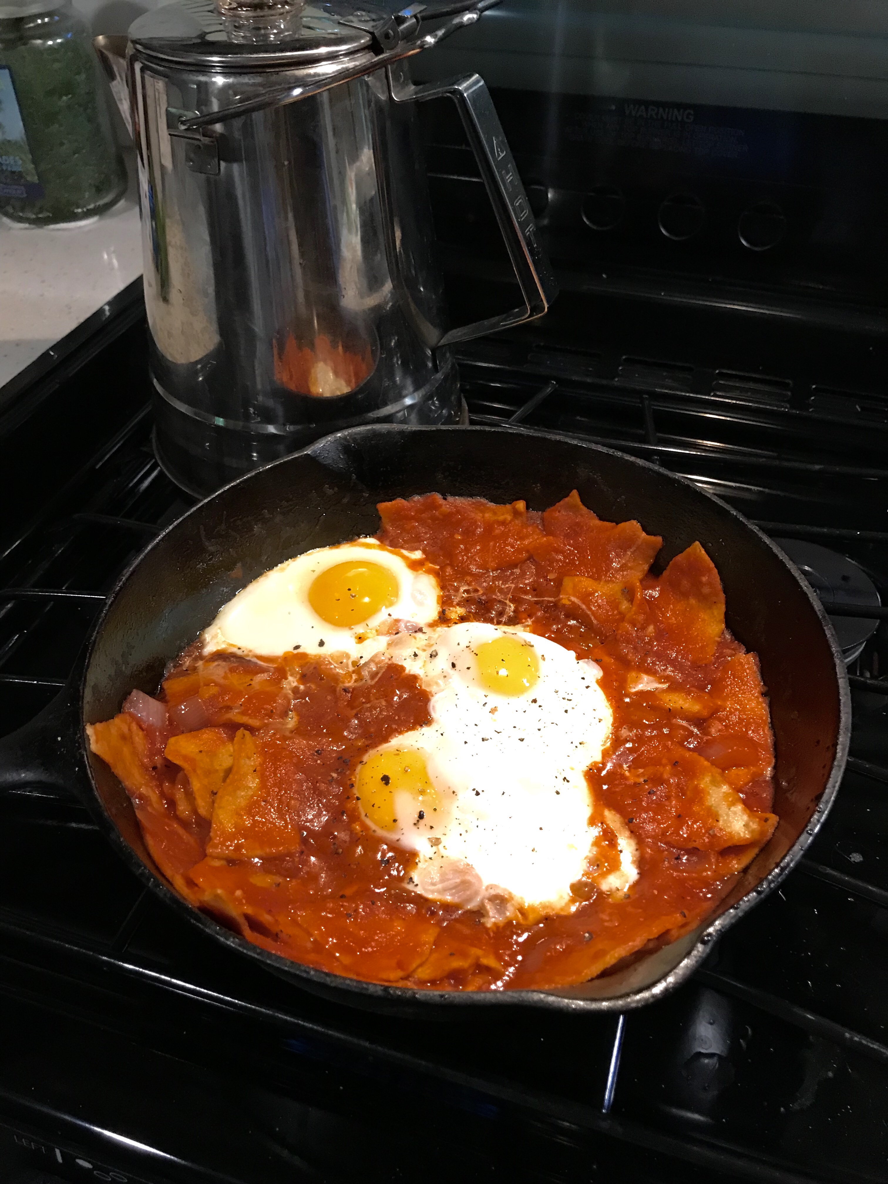 - Camp Stove Chilaquiles – Chilaquiles are a favorite brunch item at our local Mexican place. Using canned “duck sauce” and store-bought crispy tortillas make this a fairly easy breakfast. Warning: el Pato sauce has quite a bit of heat!