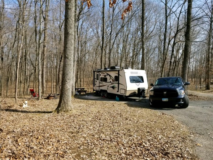Patoka Lake Campground is about 20 minutes off of I-64, just 45 minutes outside of Louisville. The approach roads were some of the easiest we have have driven to get to a campground. This would be a great option for those still nervous about towing on backroads.