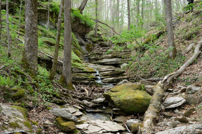 About halfway between Fern Bridge and Raven Bridge, the trail finally diverges from the park road and the woods begin to feel a bit more secluded.