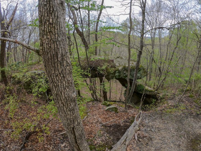 The first of the bridges pops up about a mile into the hike. Fern Bridge at first seems like another rock shelter. It is only when one gets closer that the full expanse of the bridge become apparent.