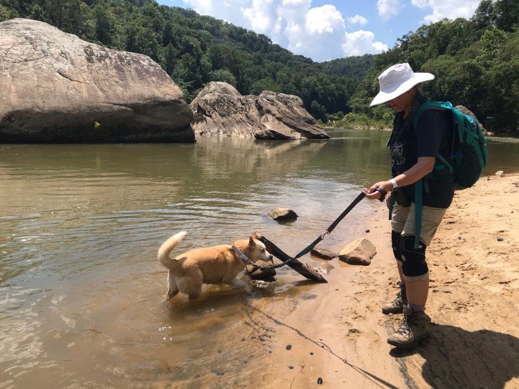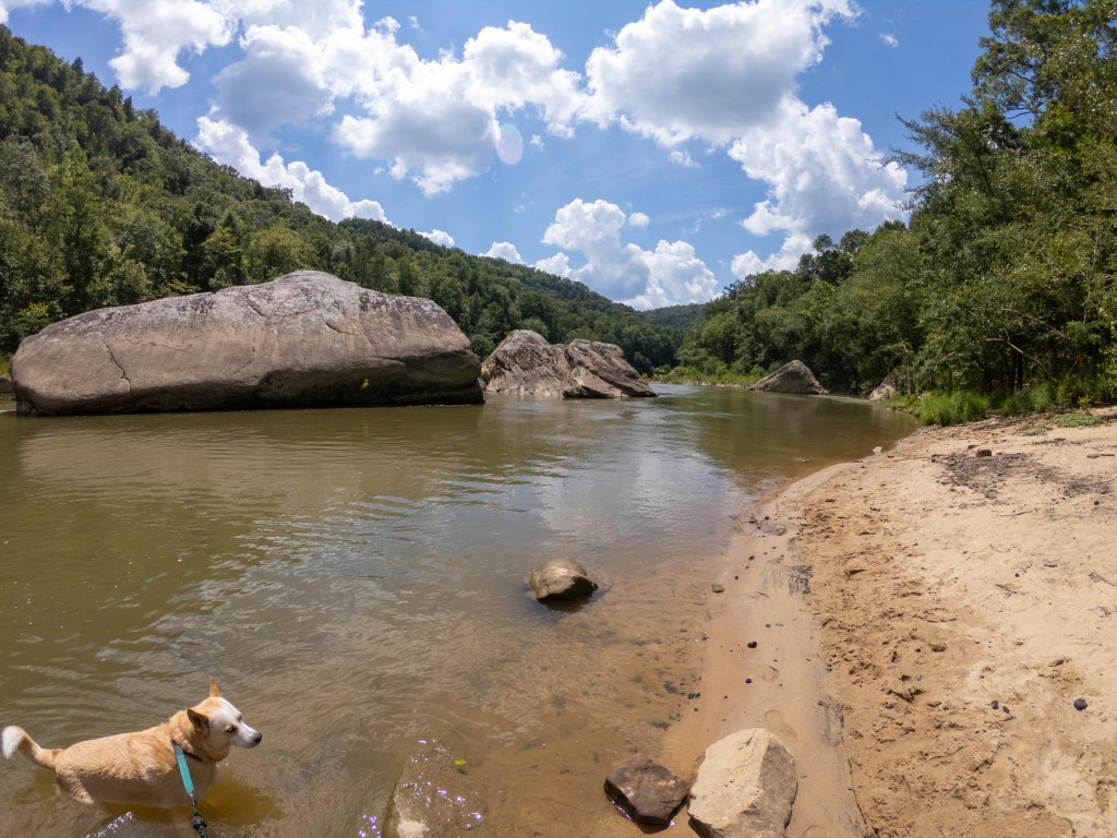 On the walk back from the rapids, Blue dug her heels in and insisted on following a side trail down to the river. She is rarely so stubborn and we conceded out of curiosity. What an incredible beach and swimming area! Blue seemed to have remembered this gem from her time living in these woods and definitely proved a fantastic guide.
