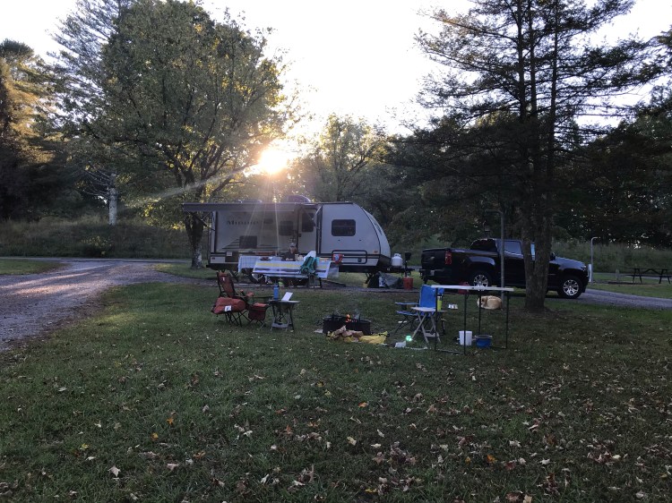 The campground features two distinct areas – one for site specific reservations and the other for generic electric/water sites reservation. The way it works (and I’m guessing this is a thing at all Virginia State Parks) is you are guaranteed a site, but you must select a specific site once you arrive. This allowed my mother and me to have adjacent sites, but this area was mostly a large field with pull-through sites. Campers were relatively far apart, but the site-specific area seems a little more private. The other weird aspect of the campground was little tent pad or sitting room in the sites located at the ends. I have always been taught that campsites run from electric post to electric post. However, end sites were forced to pitch tents on the opposite side. It didn’t matter much to me because we hung out at my mom’s fire pit, but the kids from the neighboring site were playing lawn games within feet of my fire pit and another neighbor had a stranger’s tent extremely close to his sitting area. It should also be noted that the campground had yurts, a nice primitive area, and lovely-looking cabins.