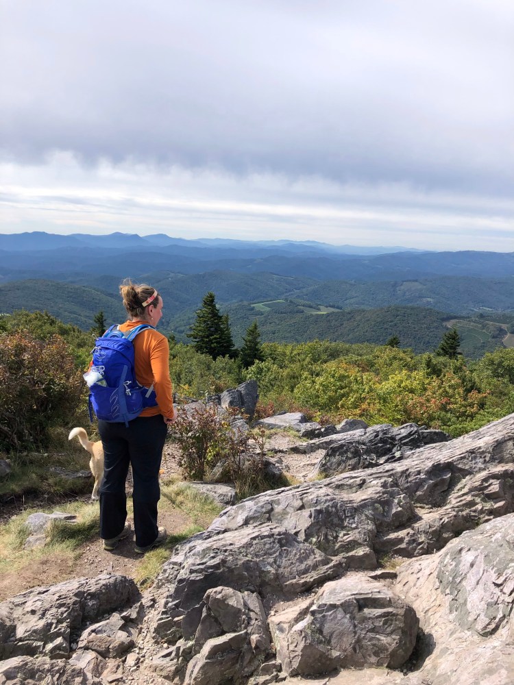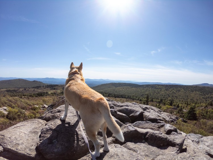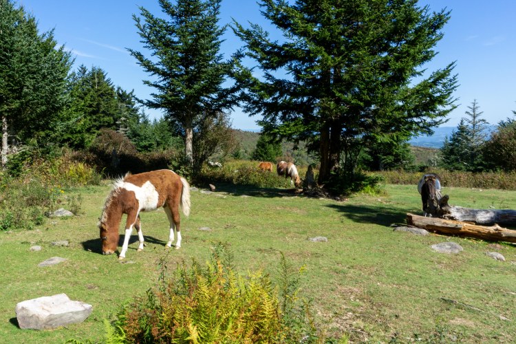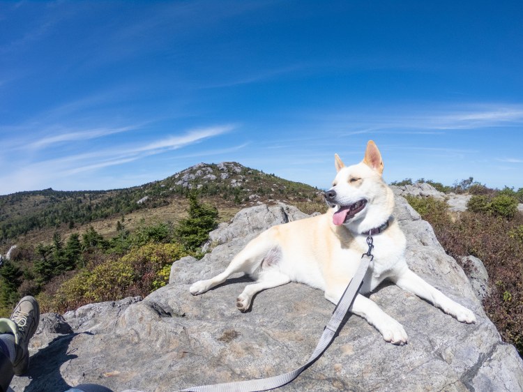 The highlight of any trip to Grayson Highlands is without doubt the hiking around Massie Gap. This area is named for the unique high-elevation habitat and the views from this area is truly spectacular. The maintenance of these subalpine balds is the responsibility of the famous “wild” ponies. Of course, feral is a better adjective, but about 100 ponies inhabit the area. And even then, these wild animals are very accustomed to pets and snacks from hikers. One should NEVER feed the animals, despite their persistent begging that borders on aggression. In other words, hikers should be prepared to be approached. Signs warn of keeping distance, but I found the attempt to be futile. Surprisingly, leashed dogs are welcomed on the trails. Blue was certainly not interested in making friends with these large creatures and that evening, I witnessed her fur rise on the back of her neck in sleep. I can only guess what fearful ponies she was fighting in her doggie dreams.