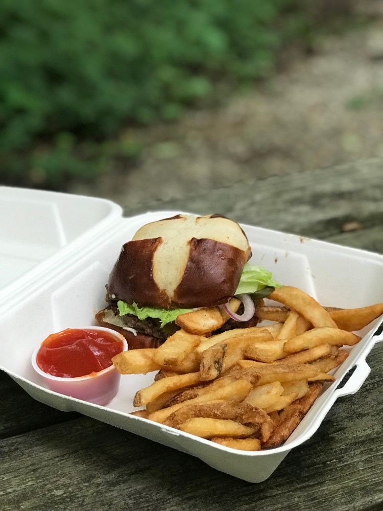 I was super excited and headed in to town to celebrate. I found a great brewery/burger place on Yelp. I got take out and enjoyed an IPA while I waited, but really wish I had just had dinner there. I know I was really hungry, and I am always a sucker for a good pretzel bun, but I thought it was an amazing burger.