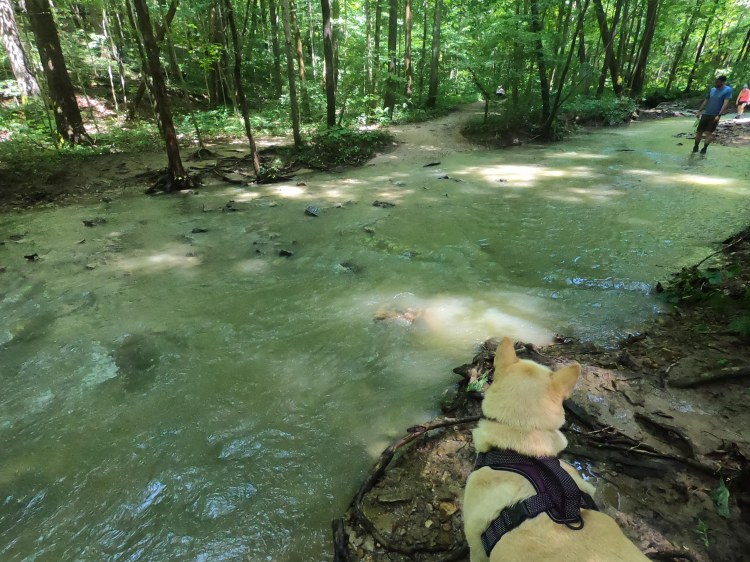 Pro tip for water crossings: A lot of people were struggling and remarking that I seemed to not be going as deep as other people. I know the instinct may be to walk up or down stream to the narrowest part of the water, but that will also be the deepest part. I crossed where the water was widest. Often it was only a few inches deep. In fairness, I follow Blue who has an instinct for this. Unless she is hot and then she leads me into the deepest part of the water.