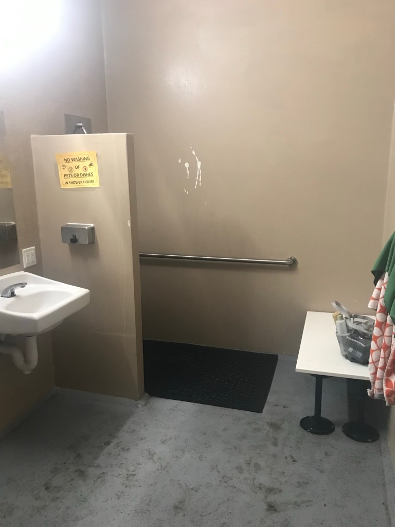 Most of the sites are relatively large and there are a lot of great trees. I would urge caution on the pull-through. In my opinion, they are way too close together and any convenience gained from not having to back-in would be lost in having to sit within arm’s reach of your neighbor. On the other hand, many of the sites have trees that require keeping an extra eye out when backing. A shower house was recently built here.