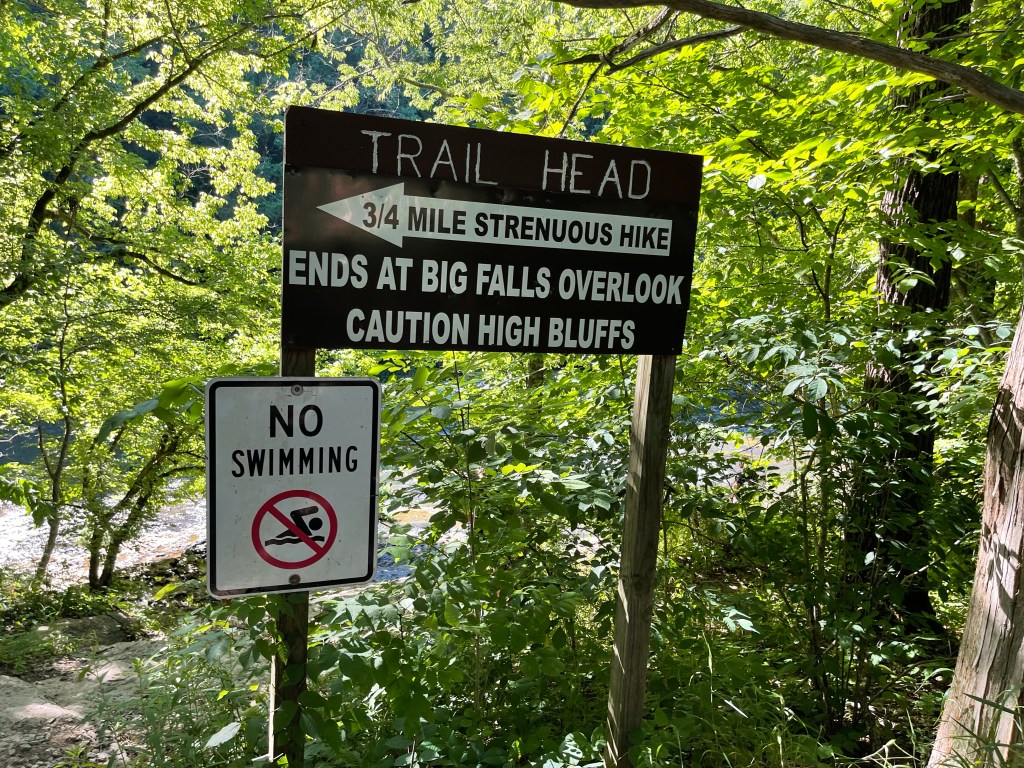 The good news is there is a nice series of falls along the trail until reaching the main event. Right off the parking lot was a large group of pools many kiddos were wading in. Along the trail, I was repeatedly impressed with the flow of water. Reaching the final overlook was very satisfying. After all we had done, we didn’t feel the need to take the VERY STRENUOUS trail to the top of the falls, but I think it would be very doable for any hiker. We were just “fall”ed out for the day.