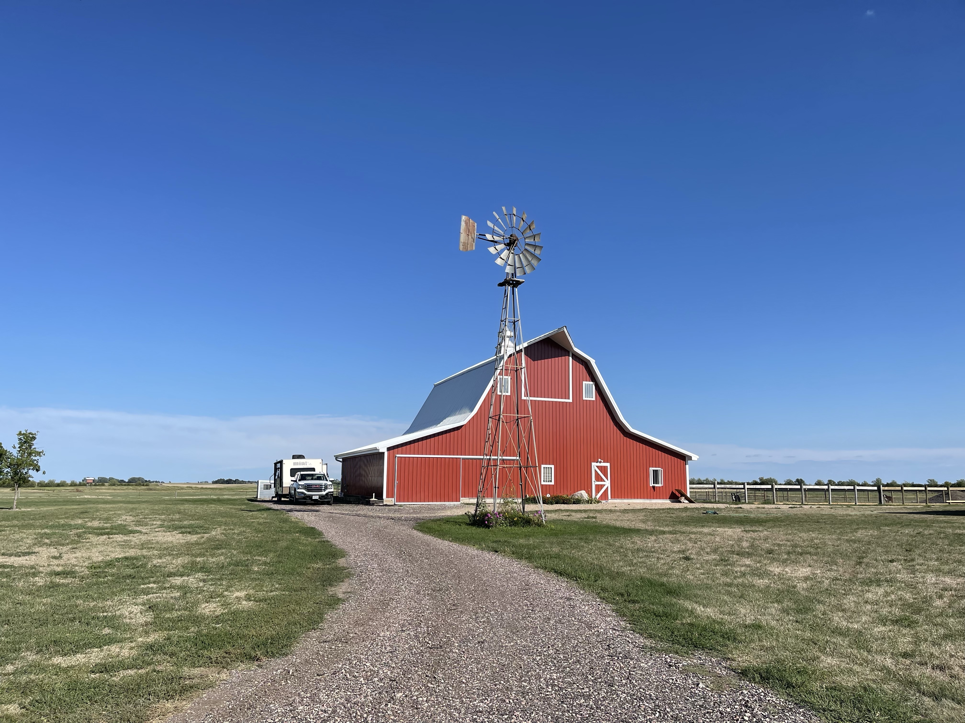It was a good decision and I slept well. Blue got a quick walk around town and then we were back on the road. I was a little bit ahead of schedule so decided to make a detour to Sioux Falls. I found a Blue Beacon there and asked them to wash the worst of the Iowa Bug Massacre from the front the trailer. An hour further west on I-90 and I was once again covered in bug debris, but I like to think it made a bit of difference.