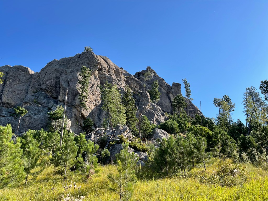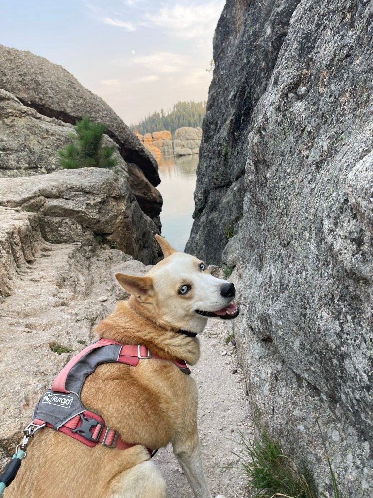According to all the hiking apps and those who visited the area, the Black Elk Peak Loop is the must-do hike in the region. The hike clocks in between 7 and 7.5 miles depending on the source. The peak can also be reached by a slightly shorter out-and-back trail, but I am always a fan of a loop. More miles can be added to the loop by bagging Cathedral Spires or Little Devil’s Tower, but I knew I was pushing Blue’s endurance as it was and didn’t want to carry a 65 pound dog.