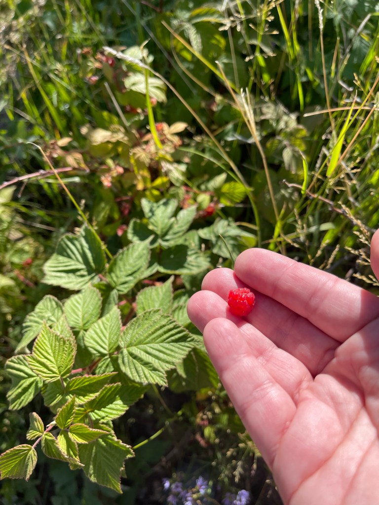 I hiked the loop counter clockwise and pretty soon I was walking through meadows, enjoying the early morning light shine off the surrounding granite peaks. At about 1 mile, you make your first climb, though it is not too steep. Trailside raspberries and spectacular views were adequately distracting. The third mile was my favorite mile of the trail as we traversed the backside of the spires and entered a dense shaded ponderosa pine forest.