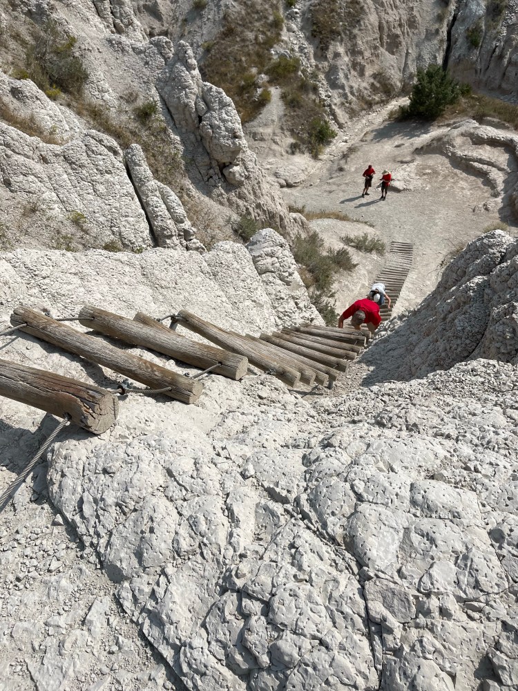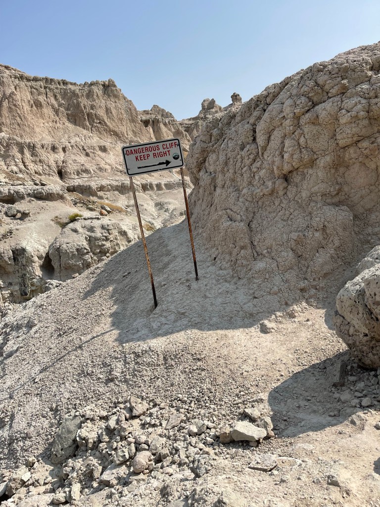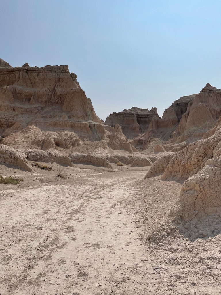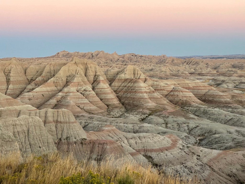If geology is not your thing, this area also has great animal habitat. I was looking through binoculars at a prairie dog town, seeking burrowing owls, when I saw a black-faced mustelid sneak among the dirt pyramids. My heart stopped as I wondered if I might be seeing one of the most endangered species in the United States. The black-footed ferret was declared extinct in 1979, but a small population was discovered in 1983. Disease heavily impact that group, so the remaining 18 individuals of the species were taken into captivity in the mid-80’s. Seven of that group were able to reproduce and are ancestors of the approximately 1500 black-footed ferrets that exist today. About 250 of those ferrets still live in captivity, but the bulk that live in the wild are in Badlands National Park and surrounding areas. I was thrilled at the thought of having glimpsed one of the success stories of the Endangered Species Act when I saw a weasel-like creature in the distance. But a kind ranger explained a badger would be much more likely to be seen hunting in a prairie dog town in broad daylight. My disappointment was very brief because I think this was my first badger sighting! It may not have been a rare moment, but it was definitely special to witness this predator skulk amongst its prey.