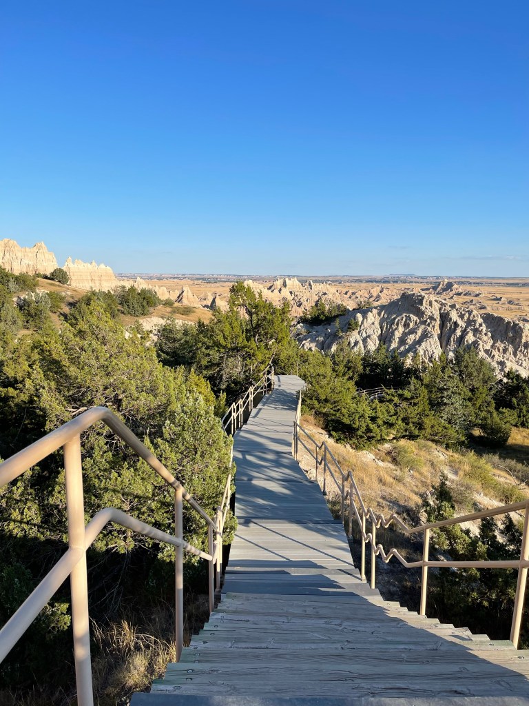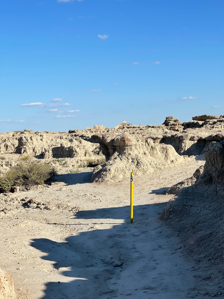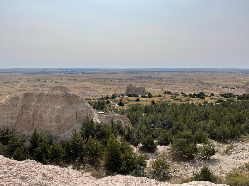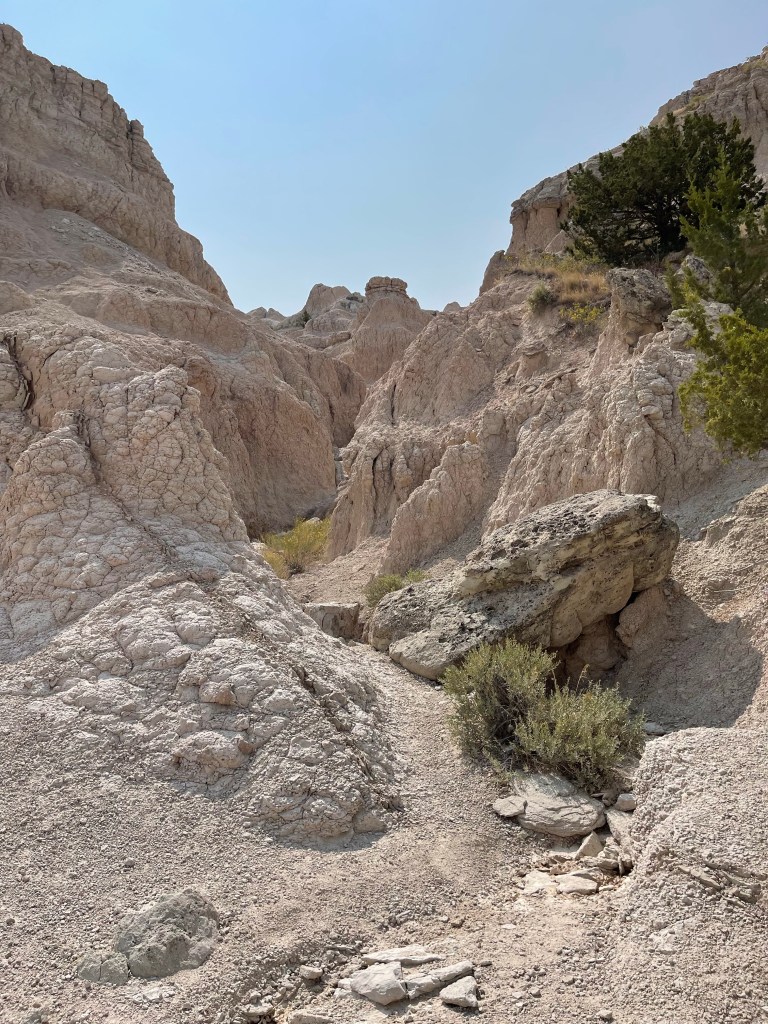 If geology is not your thing, this area also has great animal habitat. I was looking through binoculars at a prairie dog town, seeking burrowing owls, when I saw a black-faced mustelid sneak among the dirt pyramids. My heart stopped as I wondered if I might be seeing one of the most endangered species in the United States. The black-footed ferret was declared extinct in 1979, but a small population was discovered in 1983. Disease heavily impact that group, so the remaining 18 individuals of the species were taken into captivity in the mid-80’s. Seven of that group were able to reproduce and are ancestors of the approximately 1500 black-footed ferrets that exist today. About 250 of those ferrets still live in captivity, but the bulk that live in the wild are in Badlands National Park and surrounding areas. I was thrilled at the thought of having glimpsed one of the success stories of the Endangered Species Act when I saw a weasel-like creature in the distance. But a kind ranger explained a badger would be much more likely to be seen hunting in a prairie dog town in broad daylight. My disappointment was very brief because I think this was my first badger sighting! It may not have been a rare moment, but it was definitely special to witness this predator skulk amongst its prey.