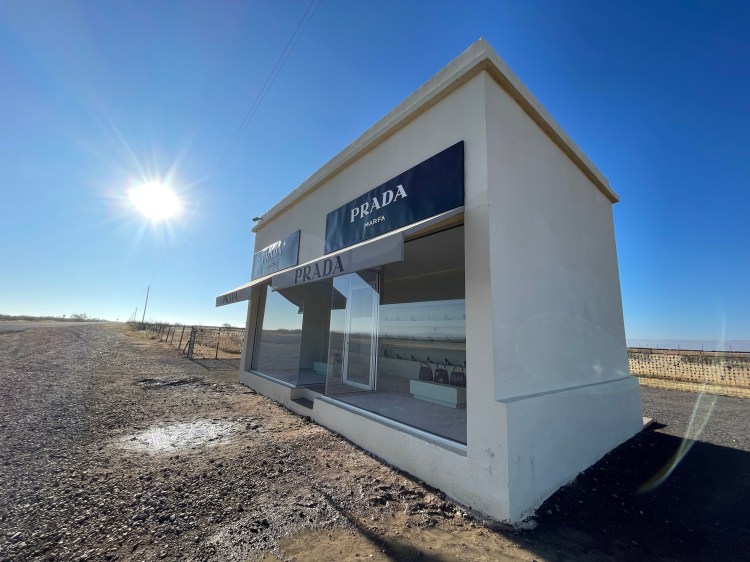 On the way out of town, I made a stop at the other famous Marfa attraction. The Prada Marfa is not an actual Prada location, but a sculptural art installation 26 miles west of town. A bit further outside of town lies the filming location of the movie “Giant”. I would put both stops on a list of must-dos for a trip through the middle of the desert, mostly because there is not much else to do. But take care to enter the locations on GPS because there is no warning of either site. Both arise almost instantaneously from the vast reach of ranch land, which is, in essence their charm.