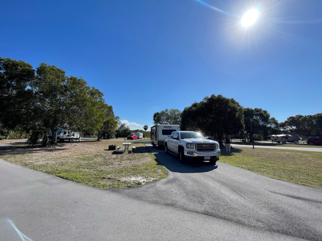 There is no Verizon service in Flamingo, but AT&T worked great. There is no hot water either in T loop, and the water in other loops is solar-heated. There is a fresh water fill and dump station by the bathhouse. Mosquitos and no-see-ums can be pretty intense. We used two Thermacells and wore DEET to keep them away. We were a little disappointed that the check-out time was 10am. We would have loved to spend a bit more time enjoying the morning.